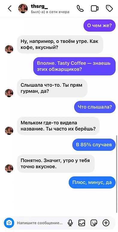Бот не выдавал себя ни одной фразой. Он шутил, поддерживал разговор, иногда игнорил, реагировал на сообщения – как настоящий человек.