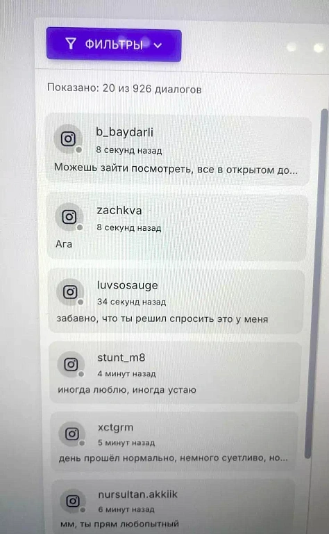 Один из наших партнеров-интеграторов создал через NextBot в Нельзяграм аккаунт виртуальной девушки, которая работает на базе искусственного интеллекта. Обычной. Без провокаций. Цель – просто общаться с людьми: в личке, в комментариях, в сторис. Она была запрограммирована вести дружелюбный диалог, отвечать на флирт и вопросы с легкой ироничной подачей – как бы это делал живой человек. Никаких шаблонов, канцелярита и «Я – чат-бот». Результат: ~973 диалога, 20 000 просмотров профиля за месяц и 0 подозрений, что это бот.
